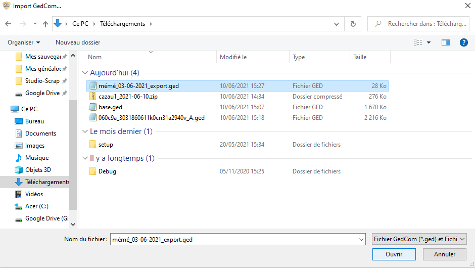 – IMPORTER SA GÉNÉALOGIE DANS GÉNÉATIQUE