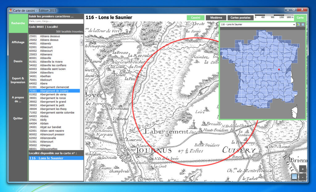 L’édition des 181 planches de cette carte en un seul programme (Nord et Sud ensemble) permet alors une installation facile sur votre PC. Ainsi, vous visualisez plus aisément tout le Royaume de France sous Louis XV avec les paroisses, les lieux-dits…