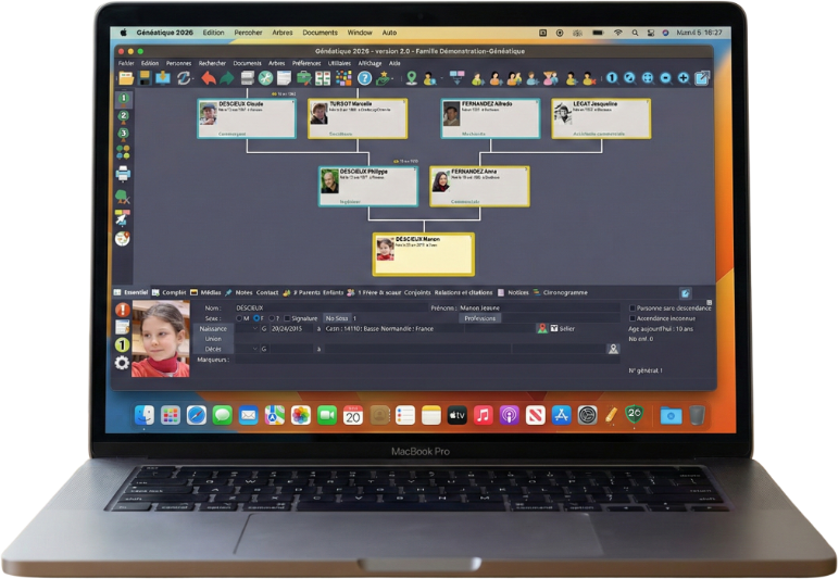 En tant que produit développé spécifiquement pour l’environnement Apple, Généatique 2026 tire parti de la puissance de votre Mac (compatible puces Intel et Apple Silicon M1/M2/M3/M4…) pour une navigation fluide, même avec des arbres de très grande taille.